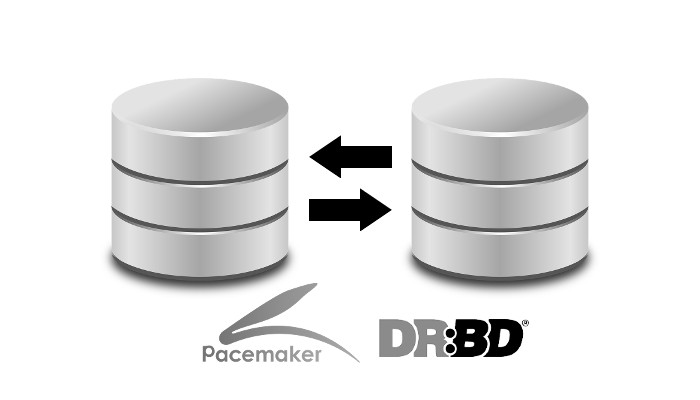 La gestion du cluster est orchestrée par le gestionnaire de ressources Pacemaker alors que la réplication des blocs de données sur les deux nœuds est assurée par DRBD.