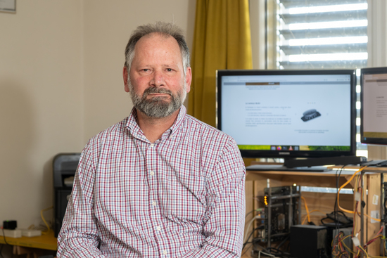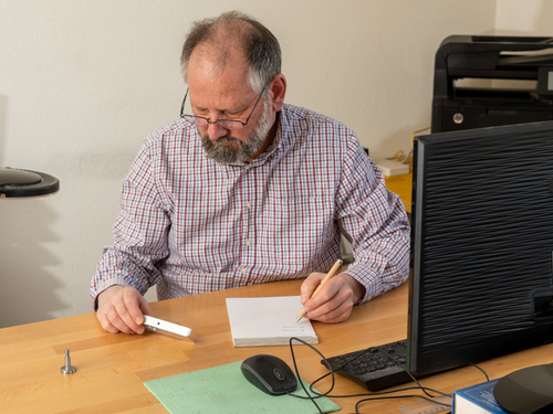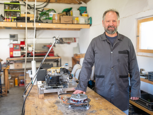 Mon activité se déroule sur deux sites : au bureau, où je réalise l’analyse, le dessin technique et la programmation ; et dans un atelier spécialement aménagé, où je fabrique les pièces mécaniques, effectue les montages électroniques et procède aux assemblages.